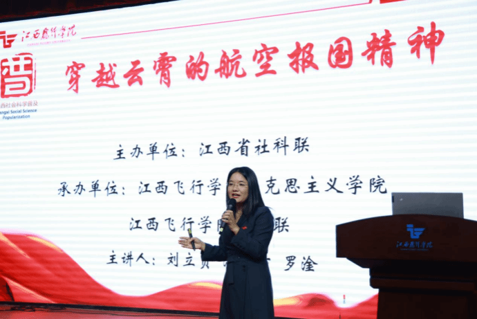 为深入贯彻中共江西省委宣传部与江西省社联共同发起的2025年江西省社会科学普及宣传周活动部署要求,推动社科普及与思政教育深度融合,10月22日,马克思主义学院依托学校航空特色优势,在学校航空大楼多功能厅举办了以“穿越云霄的航空报国精神”为主题的社科宣传周宣讲活动,为师生打造了一堂兼具思想深度和情感温度的沉浸式思政课。