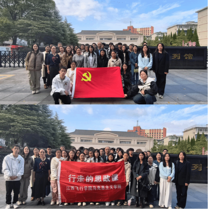 为深化思政课教学内涵,厚植青年学子爱国情怀,10月31日,马克思主义学院党支部以“理论+实践”双驱动模式,联动思政课教师集体备课组与青年马克思主义研究协会,赴南昌新四军军部旧址陈列馆开展“回望烽火岁月·凝聚奋进力量”主题活动,将历史记忆转化为育人动能,推动抗战精神入脑入心。