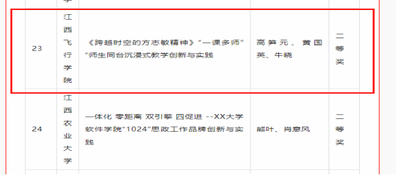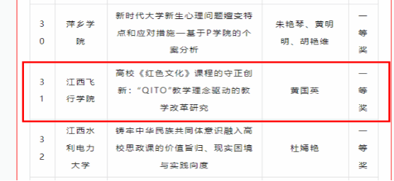 近日,江西省教育厅公布了2025年度全省高校思想政治工作优秀论文和优秀案例征集活动评选结果。我院黄国英教授撰写的论文“高校〈红色文化〉课程的守正创新:‘QITO’教学理念驱动的教学改革研究”荣获2025年度全省高校思想政治工作优秀论文一等奖;高笋元等教师申报的案例“《跨越时空的方志敏精神》‘一课多师’师生同台沉浸式教学创新与实践”荣获优秀工作案例二等奖。