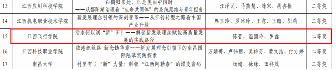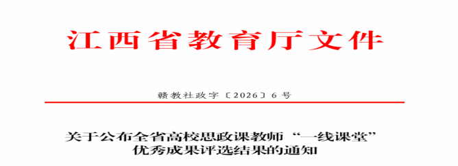 日前,江西省教育厅公布了全省高校思想政治课教师“一线课堂”优秀成果评选结果,我院教师团队陈晋、温圆玲、罗鑫申报的《活水何以润“新”田?——解锁新发展理念赋能高质量发展的实践路径》荣获二等奖。